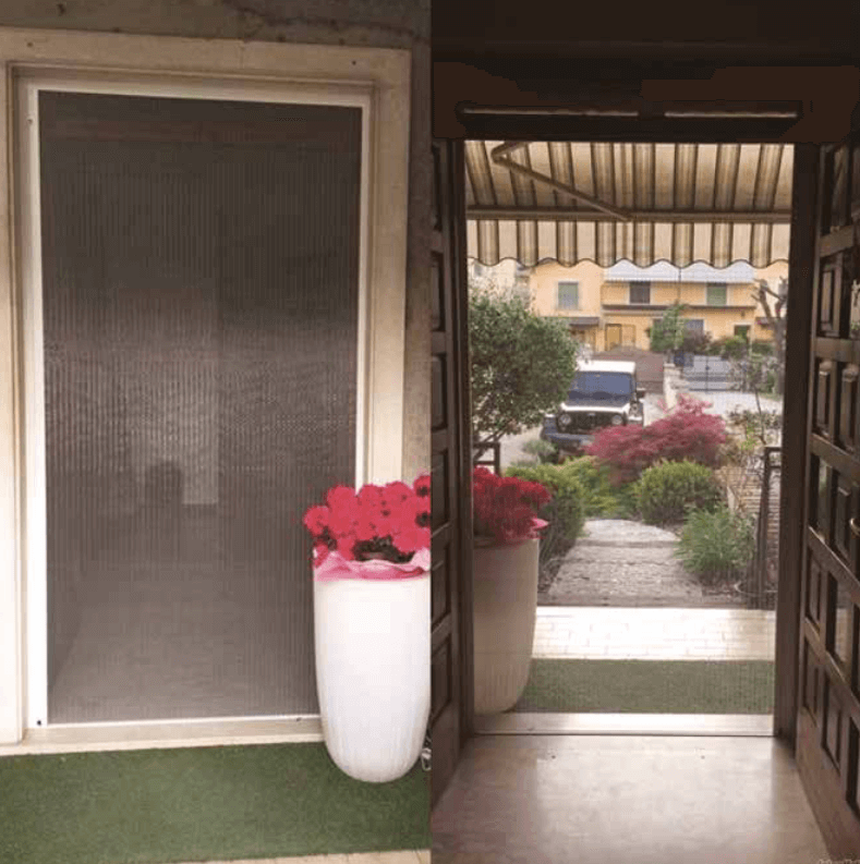 - l’apertura risulta sicura anche per bambini e anziani grazie ad una speciale maniglia che permette di aprire la zanzariera in qualunque punto;